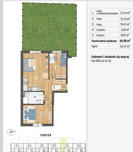 7Do wynajęcia od 01.05.2025 - 2 pokojowe mieszkanie dla max 2 osób(salon z aneksem kuchennym + sypialnia + ogródek) o ...
