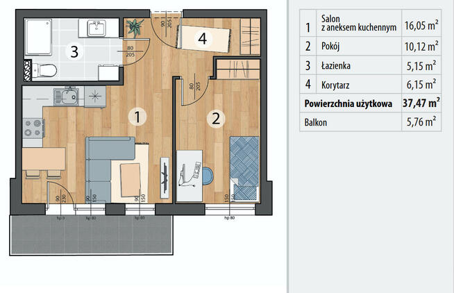 16Na sprzedaż nowoczesne, w pełni wykończone i nigdy niezamieszkałe mieszkanie o powierzchni 36,30 m². Lokal gotowy do ...